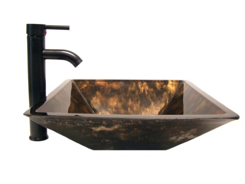 1/2" Thickness Bathroom Handpaint Square Style Glass Vessel Sink Combo with Oil Rubbed Bronze Finish Faucet & Oil Rubbed Bronze Finish Pop up Drain Review